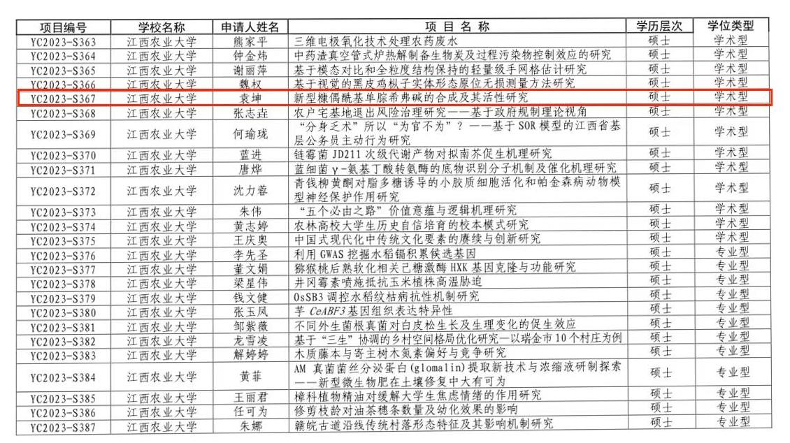 根据《关于开展江西省2023年度研究生创新专项资金项目工作的通知》(赣教研字〔2023〕12 号),公司积极响应号召并有序组织开展了项目申报以及初评工作。经研究生院进一步评审公示,江西省教育厅核准,公司成功获批1项2023年度研究生创新专项资金项目立项。