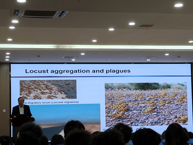 2024325日下午,pa娱乐游戏官网第七期先骕大讲坛在图书馆一楼报告厅开讲。讲坛邀请了中国科公司院士、中国科公司特聘研究员、国际著名生态基因组学专家康乐院士作了蝗虫信息素与成灾原理专题报告。