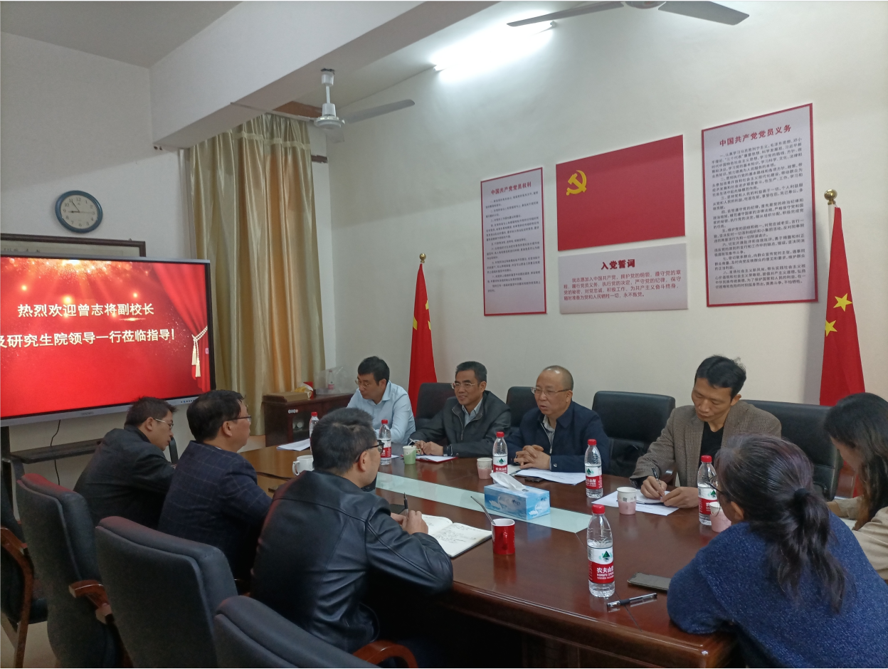 2022年10月14日上午,公司党委委员、副董事长曾志将在研究生院陈美球经理一行陪同下,到我院调研指导关于材料与化工专业硕士学位点的申报工作。学院全体班子成员、各科室负责人参加座谈会。