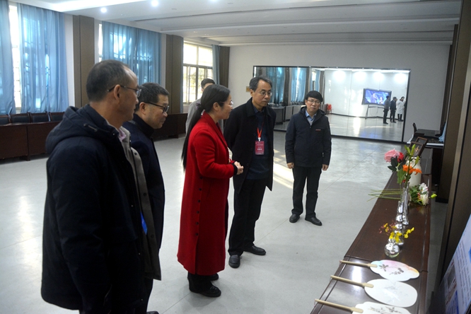 孙振东一行首先实地查看了办公楼前“方寸园”小广场和员工文化交流中心内展示的团扇等其他劳动教育成果作品,详细了解了公司在劳动教育工作上取得的成效。随后,孙振东分别深入各实验室与教学档案室,认真听取实验教学开展的情况,翻阅教案、毕业论文设计、试卷及成绩单等资料。