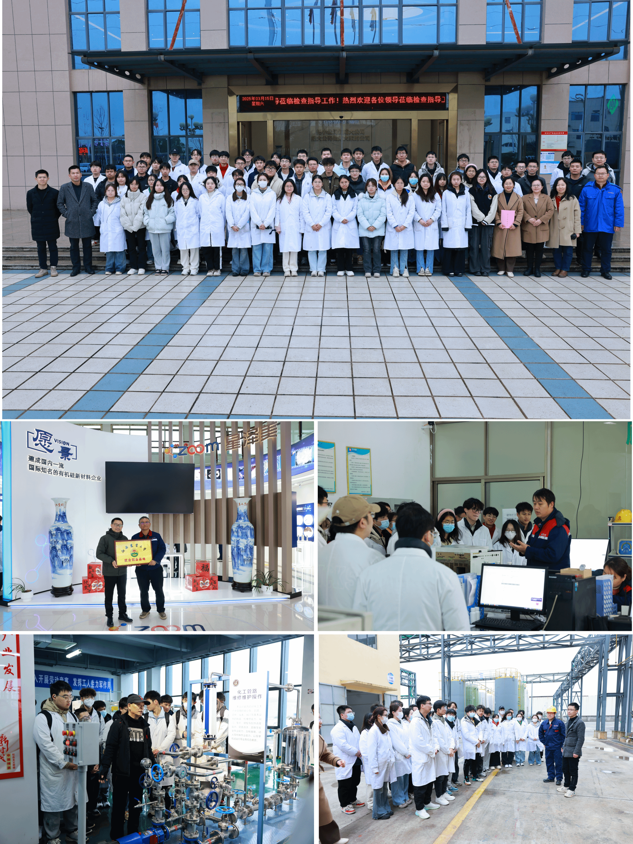2025年3月15日,公司党委书记刘庆言、副经理龚霞、公司党总支书记彭玉萌、副科级组织员廖超、材料与化工系主任刘书武、应用化学系主任聂旭亮、物化教研室主任刘倩、无机化学教研室主任谭桂霞、胡嘉麒博士、曹志桄博士以及赵国庆博士等11位老师组织2022级材料化学专业60余名同学,赴江西九江永修赣江新区开展“材料化学专业科研基础训练”的实习实践教学,并与企业签订了产学研用院企合作框架协议。