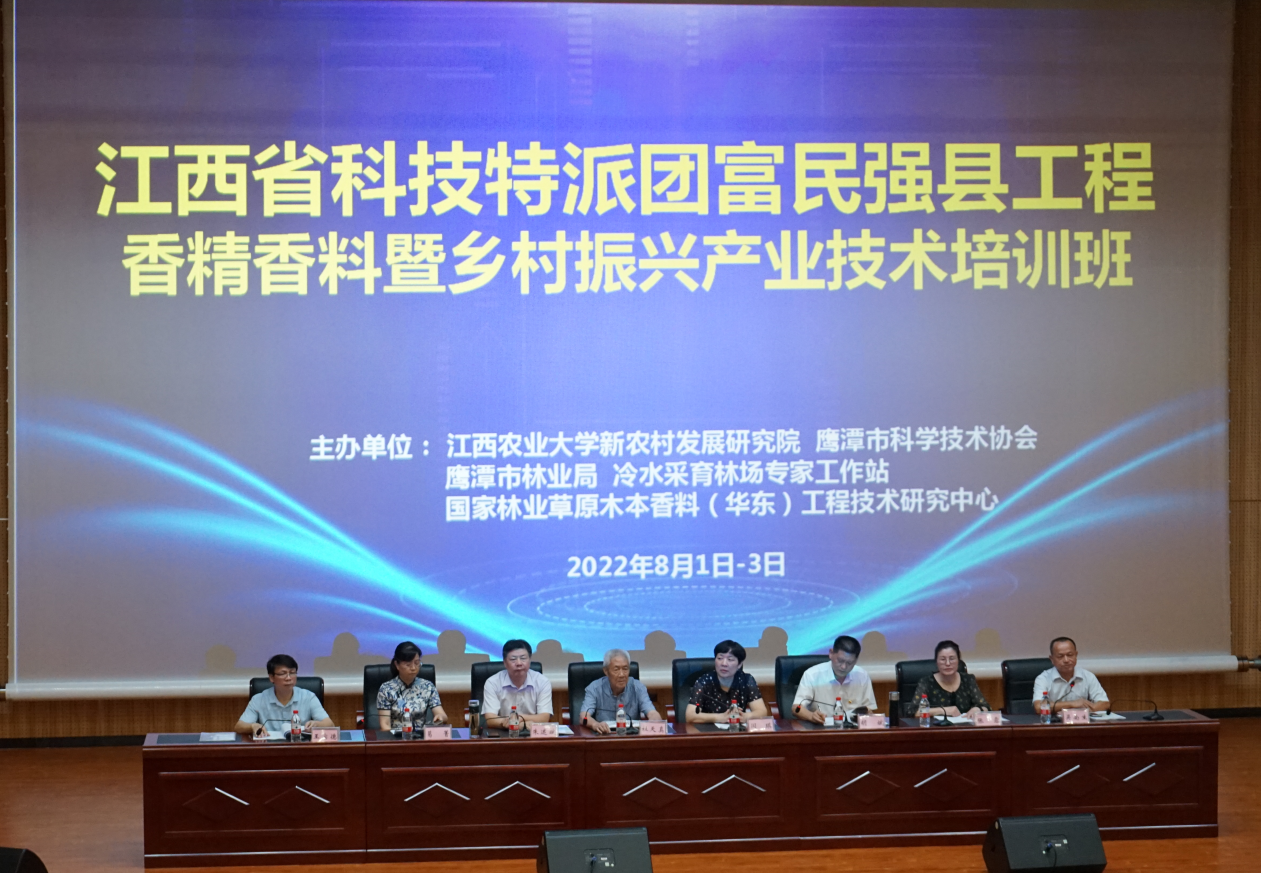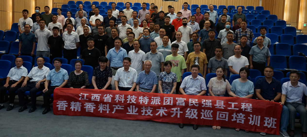 8月1-3日,国家林草局木本香料(华东)工程中心主办的江西省科技特派团富民强县工程2020年度香精香料产业技术升级培训班在鹰潭市隆重举行。本次培训班在江西省科技厅农村处的支持下,由pa娱乐游戏官网新农村发展研究院、鹰潭市科学技术协会、鹰潭市林业局、贵溪市冷水采育林场专家工作站联合主办,pa娱乐游戏官网杜天真、朱述斌、张露、吴南生教授,工程中心主任王宗德教授、副主任陈尚钘教授分别授课。鹰潭市林业技术人员、香精香料企业技术人员、农村致富带头人、农技推广员和种植户等共计100多人参加培训。