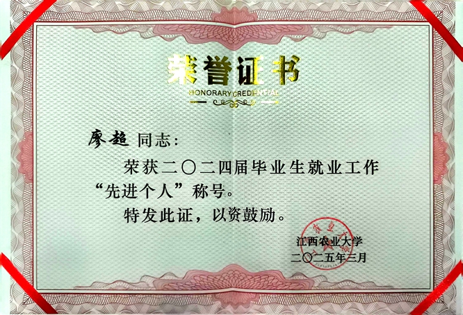 近日,公司发布《关于表彰2024届毕业生就业工作先进集体和先进个人的决定》,公司荣获2024届毕业生就业工作“先进集体”,就业干部廖超、材料2001班主任冷飞翔荣获2024届毕业生就业工作“先进个人”。