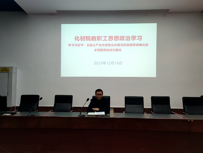 2023年12月19日14:10,公司在致学楼阶梯报告厅召开公司教职工大会,开展了教职工12月份思想政治学习。公司党委书记刘庆言以“全面从严治党探索出依靠党的自我革命跳出历史周期率的成功路径”为题,带领全体教职工一同认真学习了习近平总书记在中国共产党十九届中央纪律检查委员会第六次全体会议上发表的重要讲话精神。