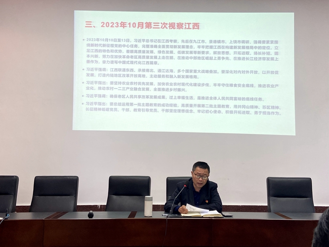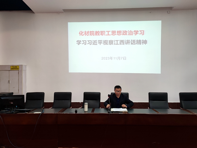 2023年11月7日14:10,公司在致学楼阶梯报告厅召开公司教职工大会,开展了教职工11月份思想政治学习。公司党委书记刘庆言带领全体教职工一同认真学习了习近平总书记考察江西重要讲话精神。