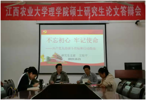 2019年10月21日中午,为深入开展“不忘初心、牢记使命”主题教育,理公司研究生党支部书记文阳平以“不忘初心、牢记使命,共产党人的奋斗目标和行动指南”为主题作了专题讲座。