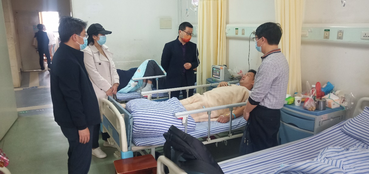2023年5月23日上午,公司党委刘庆言书记、王宗德经理、叶健副书记及卢丽敏副经理赴南昌大学第一附属医院探望因病住院的院工会主席聂旭亮老师,表达了公司的慰问、关心和祝福。