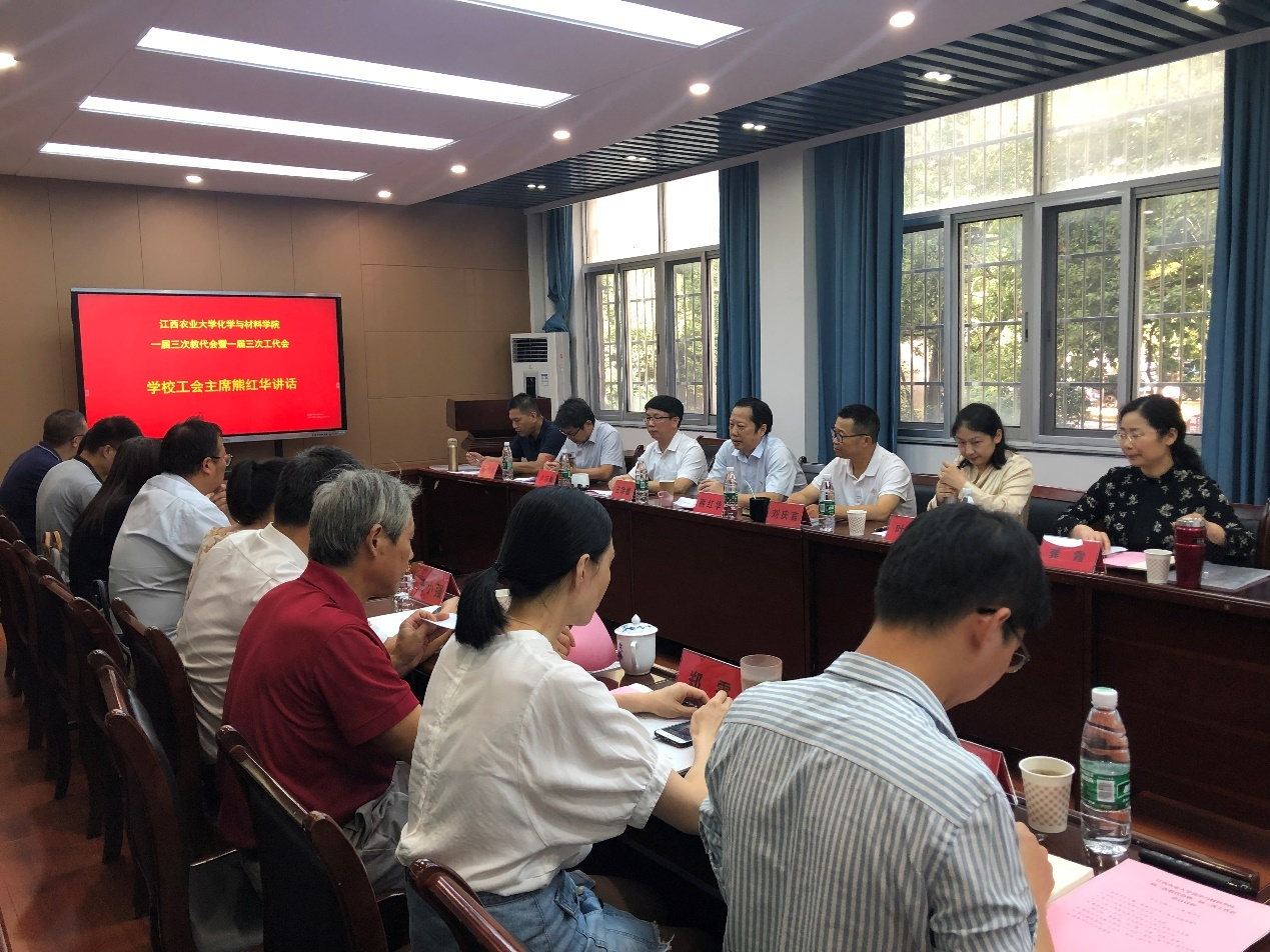大会在庄严的国歌声中开幕。尔后,校工会主熊红华主席作了重要讲话,充分肯定了化材公司在科研、教学、社会服务等方面做出的成绩,肯定了公司分工会的工作,面对新的形势,新的任务要求,对分工会工作提出了五点要求:1.强化党对工会工作的领导;2.广泛开展师德师风建设与活动,充分发挥教职工在公司建设发展中的主力军作用;3.深入开展和谐公司文化建设,开展教职工喜闻乐见、接地气的活动,激发公司教职工的工作热情;4.强化民主监督管理,深化信息公开,不断推进公司民主政治建设;5.加强工会的自身建设,提高服务意识,多发挥工会的作用。