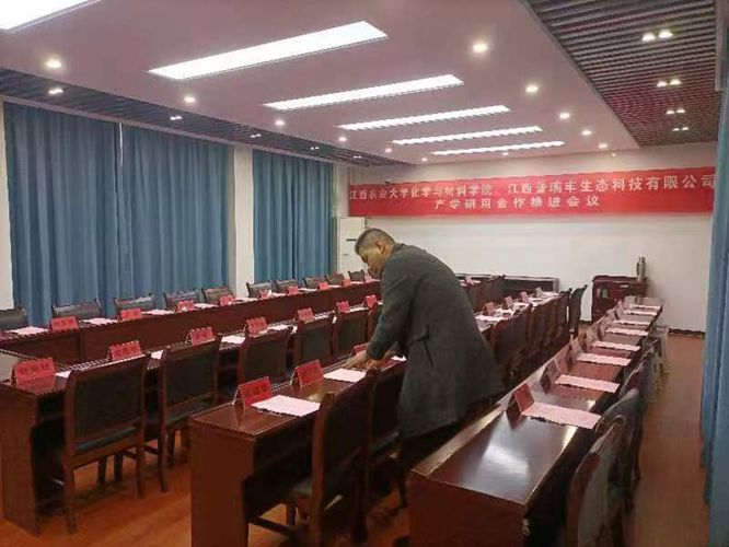 产学研合作对于提升创新能力、加速科技成果转化、培养创新人才、促进区域经济发展和推动科技进步等方面都具有重要的意义,公司高度重视校企产学研合作,公司将于2024年1月13日与江西普瑞丰生态科技有限公司举行产学研用合作推进会,公司高度重视此次会议,会前,化学系支部党员聂旭亮带领师生精心布置了会场,预祝此次会议圆满成功。