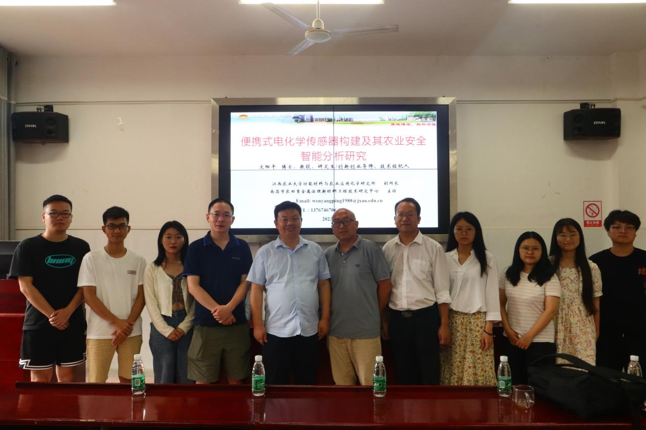 在本次报告中,文阳平教授以“便携式电化学传感器构建及其农业安全智能分析研究”为汇报主题,在以“柔性集成电极”等四大基础背景技术下,重点介绍了高灵敏、快速、简便、廉价、便携式、无线智能检测新方法,实现了对农田环境和农产品中各成分的快速检测,这对保障农产品和食品安全及环境安全至关重要。在众多传统分析方法中,传感器因其操作简单、成本划算、检测快速、灵敏度高和户外使用等优点而备受青睐。更重要的是,电化学传感器微型化、智能化、无线传输,电极可通过材料表面图案化制备技术轻松获取,无需复杂、繁琐、费时的传统制备工艺。最后,文阳平教授对化材公司师生所关心的问题进行了详细的解答,李辉勇副经理结合会议交流情况进行总结,会后对农林高校化材公司教师科学研究进行交流,奠定了两校化材公司交流与合作的前期基础。