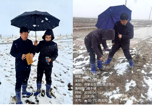 近日,在内蒙古扎鲁特旗冬黑麦种植区,pa娱乐游戏文阳平教授带领其员工曾祥荣,通过实地考察和检测,当地高碱(pH>10.0)土壤导致根系发育不良,加之低温潮湿强碱环境,造成植株根部腐烂、叶片枯黄,严重时导致直接枯死现象,提出了一套结合多元生物小分子抗病虫植物营养液喷施与多元素调减碱矿物胶滴灌的综合解决方案,为当地冬黑麦稳产增产提供科学支持。此外,还对前期高盐(含盐量>10‰)高碱(pH>10.5)盐碱地改良,高碱灌溉水导致降碱效果不佳,持续返碱返盐问题提出补充综合解决方案,采用味精发酵尾液、木醋液和矿物胶等多种酸性(pH<4)物质,通过淋洗、滴灌和喷灌/施等综合措施,从灌溉水、耕地、作物等多视角降碱降盐抗逆。