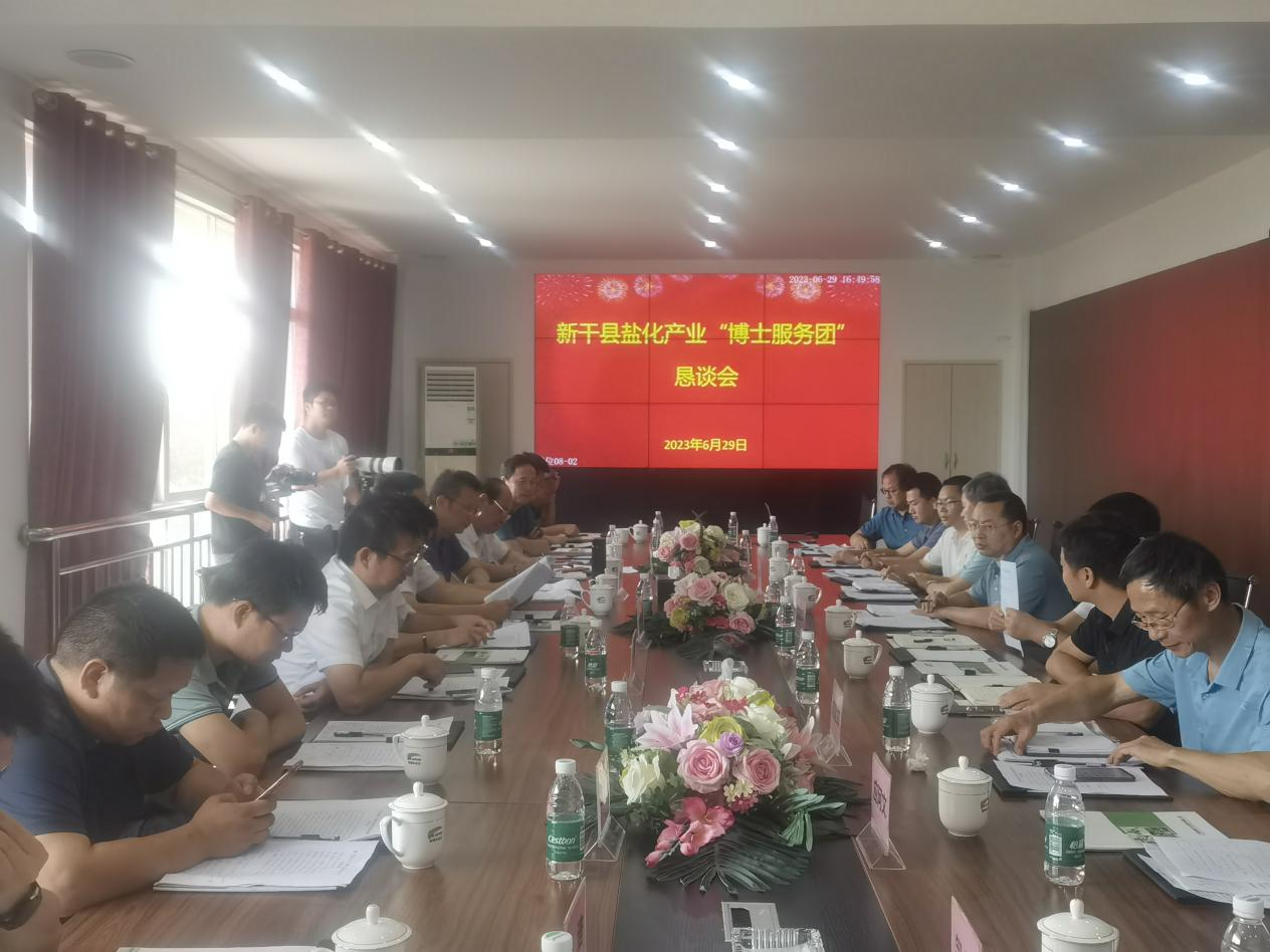 2023 年6月29日,吉安市新干县召开盐化产业“博士服务团”恳谈会。县委常委、组织部部长汪啸君出席恳谈会并讲话。县委组织部、县科技局相关负责同志和15名博士、企业高管参加恳谈会。
