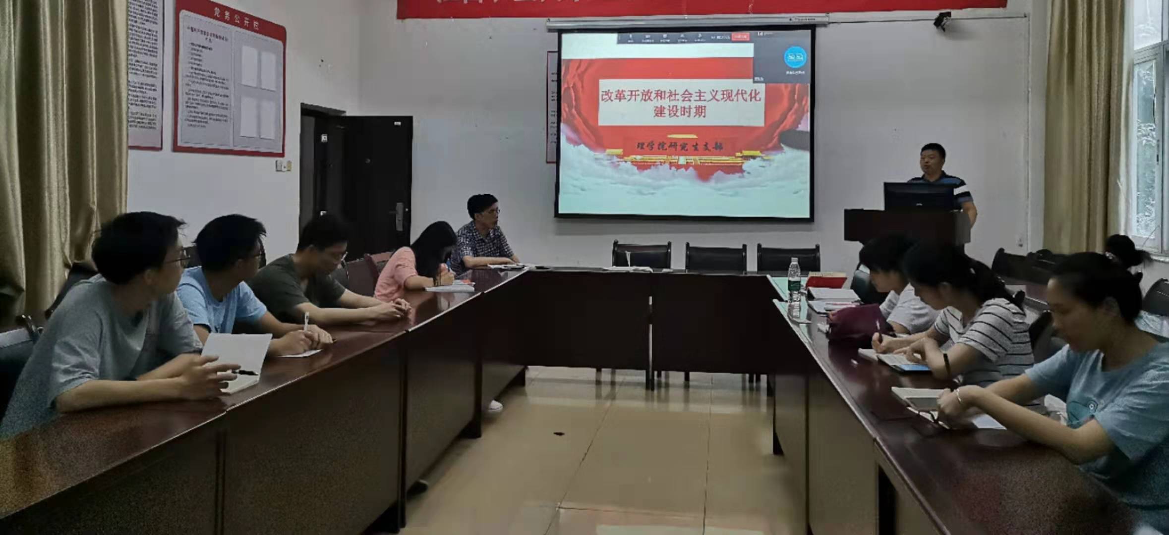 2021618日,研究生党支部在党员活动室开展了党史学习教育专题讲座——“改革开放和社会主义现代化建设新时期”。会议由支部书记文阳平老师主持,支部所有党员、近期发展对象及入党积极分子参加了会议。