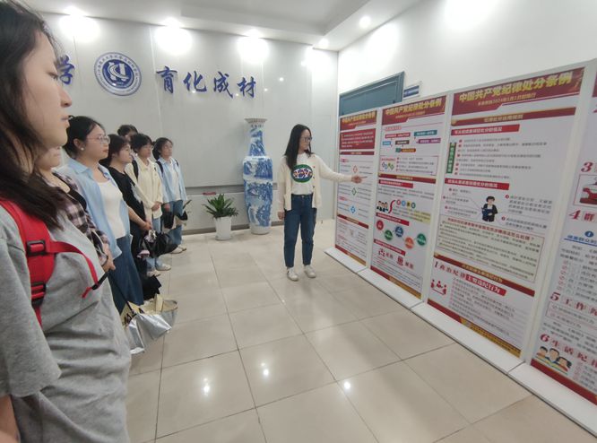 2024年5月21日下午,本科生第一党支部全体党员集体参观学习了公司设立的党纪学习教育宣传栏,支部书记邓雪云就宣传栏上的一些重点内容向党员进行了强调。