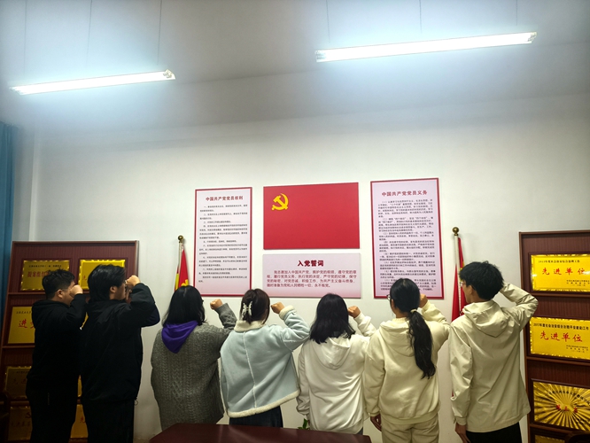 会后,本科生第一、第二党支部联合举行了新发展党员入党宣誓仪式。