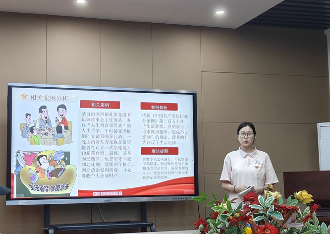 活动中,员工党员们以《中国共产党纪律处分条例》为内容,结合部分典型案例,通过PPT展演的方式讲述了条文的内容及个人的学习感悟。经过激烈的比拼,本次比赛最终评选出一等奖1名,二等奖2名,三等奖3名和优胜奖4名。