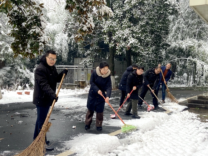 为全力保障师生平稳安全出行,2024年1月22日上午,公司组织党政领导、行政坐班人员及党员志愿者在公司办公楼、实验楼周边开展清扫积雪活动。本科生第二党支部书记廖超参与本次活动。