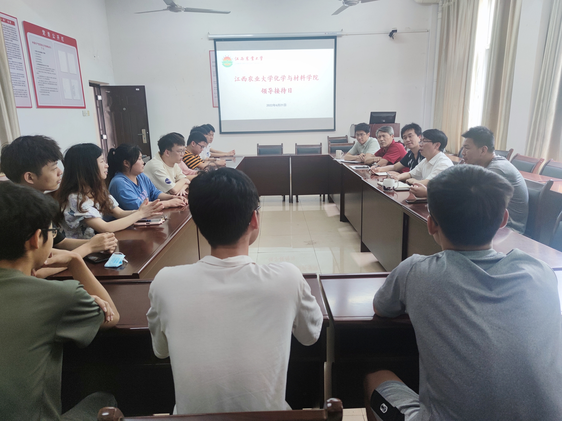 2022年6月21日11:00,公司在致理楼212会议室开展领导接待日活动,经理王宗德出席活动,教师代表聂旭亮、张晓华,团委书记、学工办主任彭玉萌及12位员工代表参加了活动。