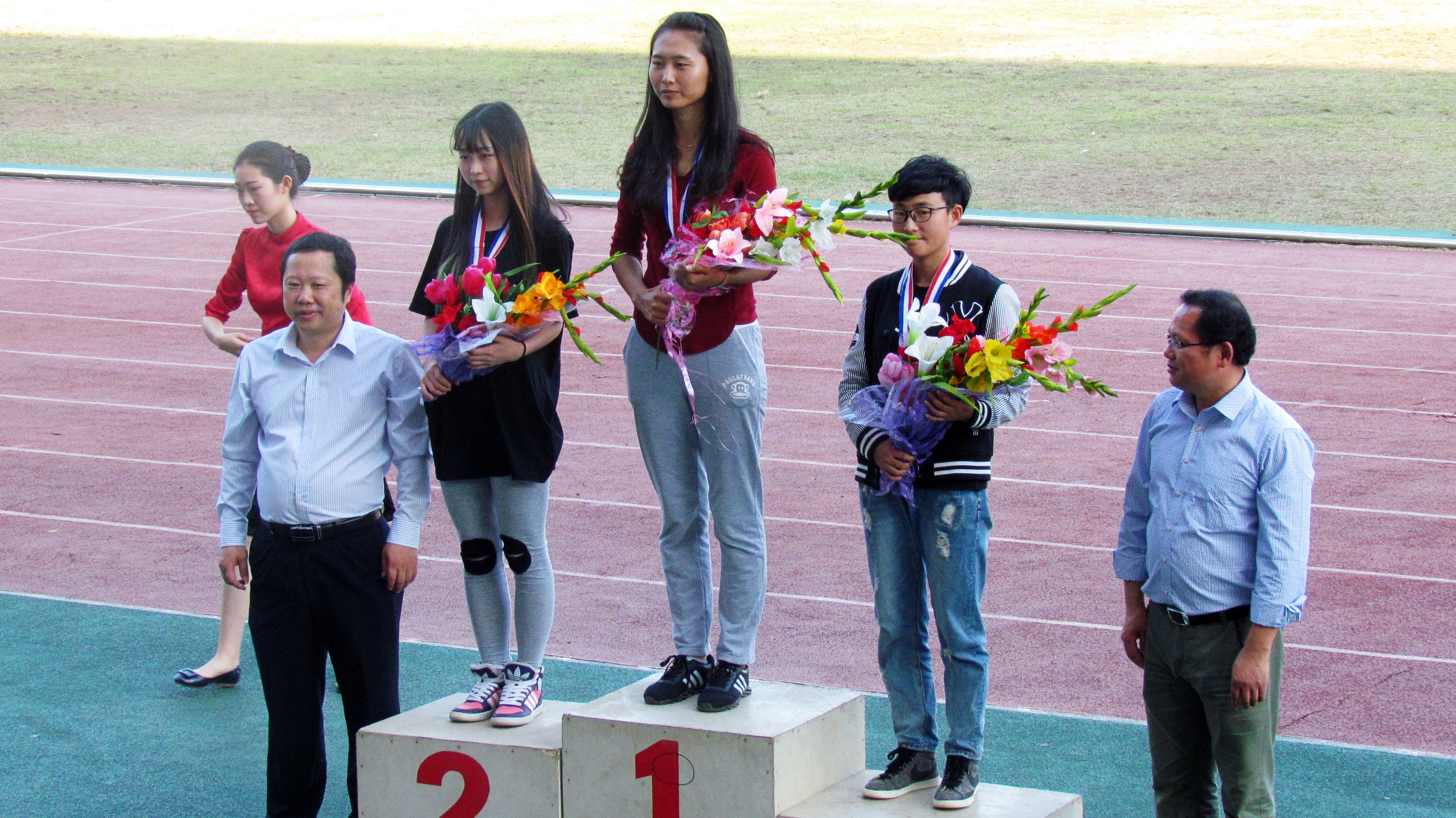 在本次运动会期间,公司运动健儿充分发挥敢于拼搏,勇于争先的精神,获得了不俗的成绩。其中,信计1401班张庆月获女子甲组铁饼和标枪双项冠军,应化1501班倪杰获男子乙组跳远冠军,信计1401班何煦获男子乙组跳高冠军。