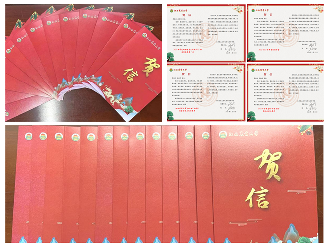 公司高度重视本次活动,根据员工2023年度优异表现精心撰写贺信内容,共寄出贺信74封,每一封贺信都承载着公司对学子们的殷切期望和美好祝愿,传递着家校共育的温暖与力量。贺信涵盖祝福祝贺、员工表现和未来展望等内容,公司衷心感谢员工家长对公司公司工作的关心和支持,热烈祝贺员工取得的成绩和收获,希望同家长一起进一步健全家校沟通平台,增进家校育人共识,深化家校育人机制,凝聚家校育人合力,共同助力员工成长成才。