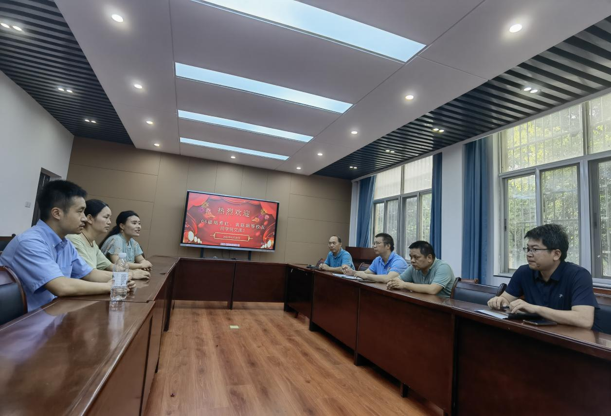 6月29日,应化062班员工、贵州凯里公司教授胡秀虹、江西省农科院助理研究员袁丽娟、pa娱乐游戏官网林公司副研究员廖圣良3位员工回公司开展交流。公司党委书记刘庆言、经理王宗德、副经理卢丽敏和龚霞热情接见了3位员工。公司员工会秘书长陈金珠、副秘书长黄喜根、任课教师代表彭大勇等一同参加了交流会。