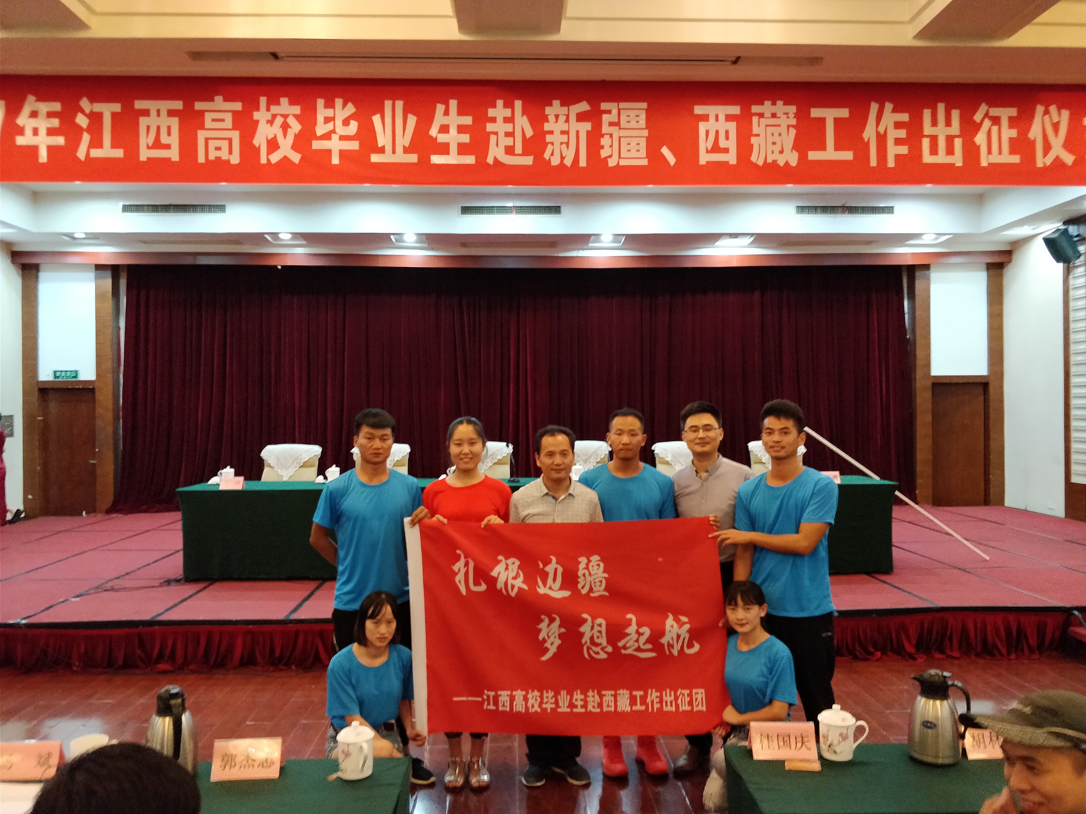 2017年7月30日,pa娱乐游戏官网举行高校毕业生赴新疆、西藏工作出征仪式,后面左起第四位为郑凯元