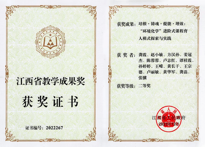 建设“金课”,突出教学相长实效。2018年以来,公司持续推进公司产品研究与实践,在课程建设、教材出版、项目立项、教学竞赛、教学成果、育人成效等方面呈持续上扬态势。一是建成省级课程10门,其中课程思政示范课程1门。课程包括江西省精品在线开放课程“环境化学”和“普通化学”、江西省线上一流课程“生活中的趣味化学”和“现代仪器分析”、江西省线上线下混合式一流课程“环境化学”“现代仪器分析”和“普通化学”、江西省高校育人共享计划课程“环境化学”、江西省研究生优质课程“高等环境化学”等10门。二是编写出版教材11部,获得教材奖3项。教材包括《普通化学》《有机化学》《分析化学》《物理化学》《仪器分析》《有机合成化学》《应用化学专业英语》《养殖水环境化学》等11部,获得全国农业教育优秀教材奖2项,江西省普通高等公司优秀教材二等奖1项。三是主持省级教研项目18项,其中重点项目6项。在教学内容创新、思政融合、科教融合、产教融合、教学模式创建、评价模式建设、等方面获得省级教研项目立项18项。四是荣获省级竞赛奖3项,省级教学成果奖1项。凝练公司产品研究成果,荣获第二届江西省教学创新大赛正高组二等奖、虚拟现实教学应用创新大赛一等奖、第五届江西省本科院校青年教师教学竞赛理科组三等奖;荣获江西省教学成果二等奖。五是指导本科生获得国家级/省级项目立项19项。公司产品研究成果用于教学实践,提升员工的科学创新思维和科学创新能力,员工获得互联网+老员工创新创业国家级项目10项、省级项目9项。