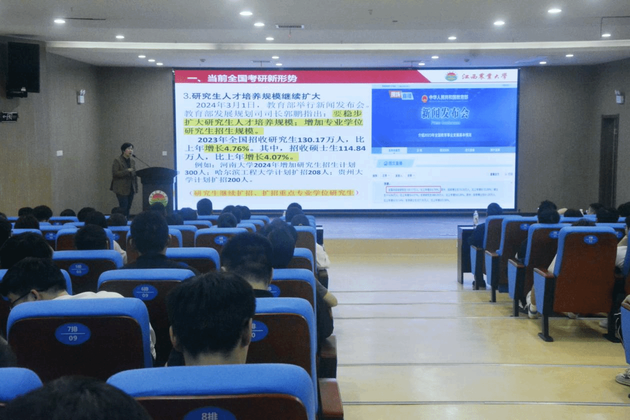会上,校招就处副处长李莉萍作《考研升学形势分析报告》,围绕“当前全国考研新形势”、“公司考研升学总体情况”、“员工考研备考对策建议”三个方面全面系统地解读了当前的考研形势。优秀员工、公司2014届毕业生、南昌海关技术中心张烈远结合毕业多年后重新考研的亲身经历强调了考研深造不仅可以更好地适应社会需求,同时也有利于人生价值的实现。同时,公司邀请一对学霸兄妹——公司国家重点实验室研究生、公司2022届毕业生王名杨和公司2020级员工、拟录取中国农业大学的考研员工王宇珍作经验分享,二者结合读研和备考经历,告诉全体在座同学“为什么要考研”、“怎么样考研”、“读研的意义”。最后,材料与化工系主任刘倩作报考本校考研动员,从多个方面展示了公司和公司的优势特色和育人成效,鼓励同学们报考江农、筑梦江农。