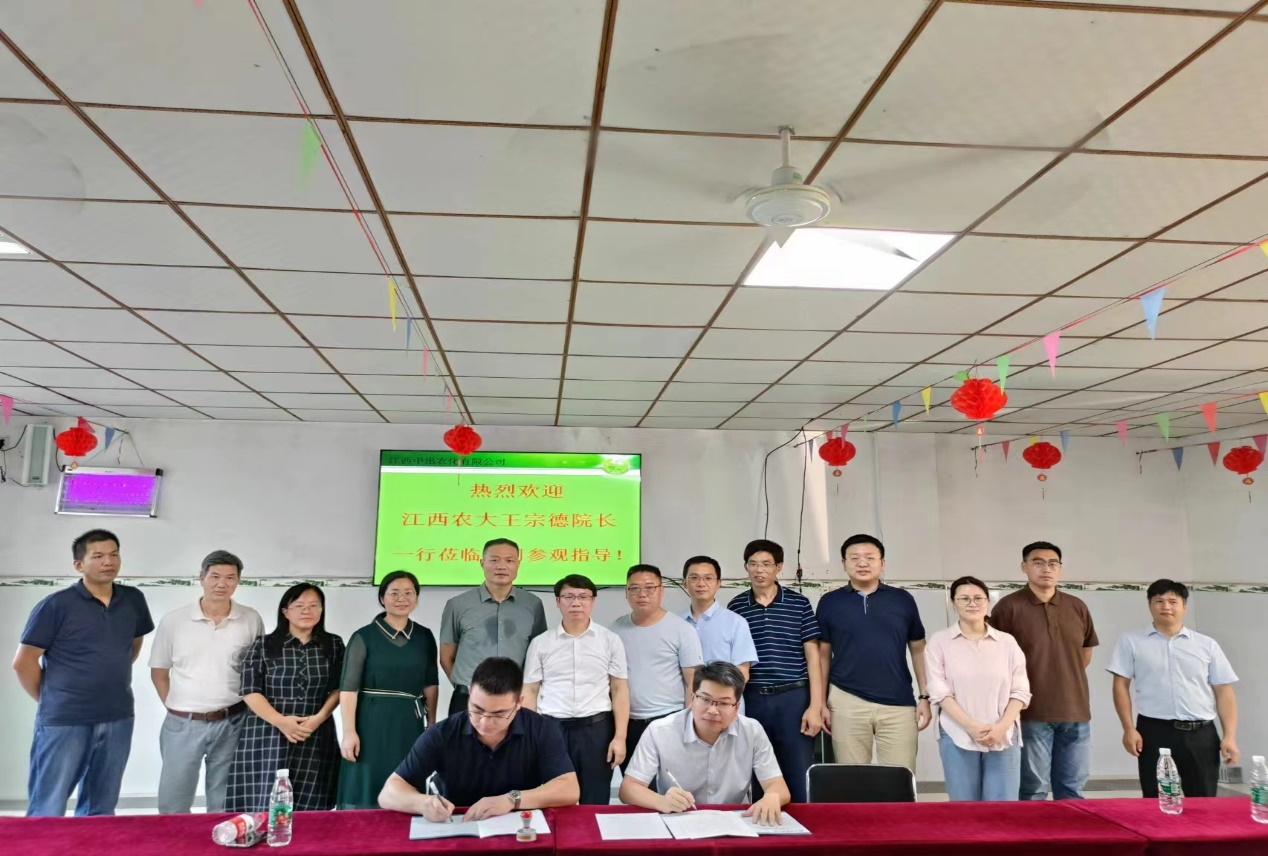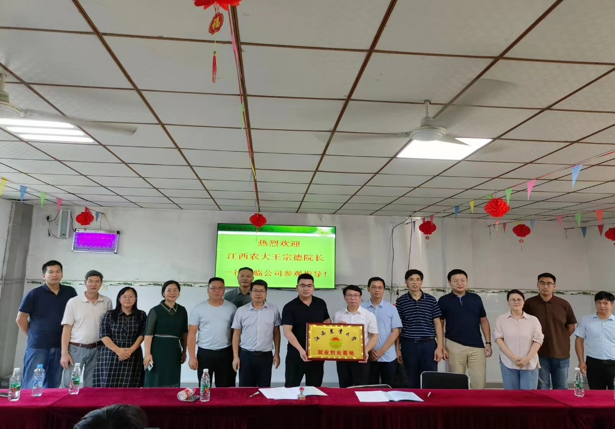 副经理卢丽敏代表公司与江西中迅农化有限公司签订“pa娱乐游戏官网与用人单位共建毕业生就业创业基地合作意向书”和“科技合作协议”。经理王宗德为公司授牌“pa娱乐游戏官网就业创业基地”。双方将充分发挥各自优势,在科学研究、技术应用、成果转化、实习实训等方面加强合作。