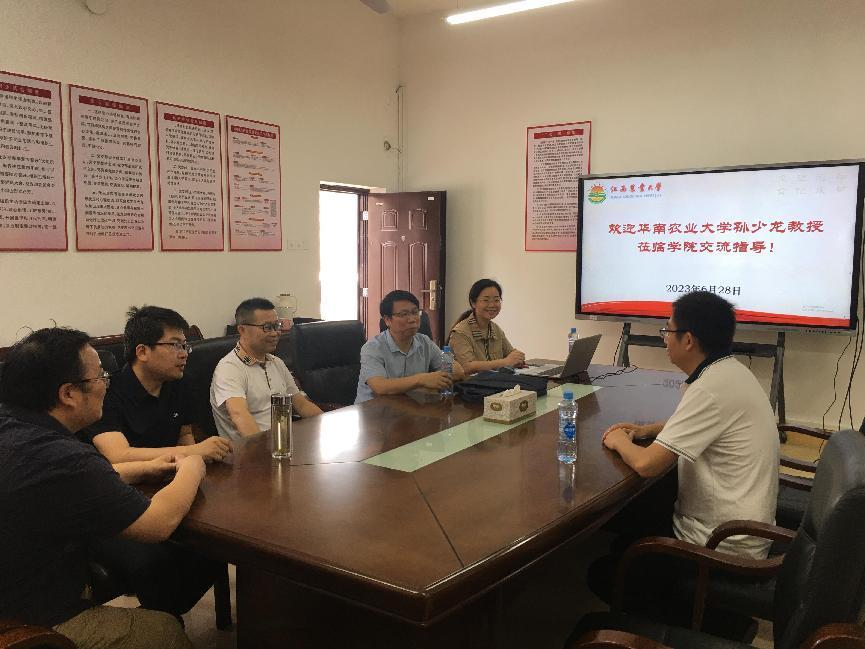 6月28日上午,华南农业大学孙少龙教授来公司交流,公司党委书记刘庆言、经理王宗德、副经理卢丽敏、副经理龚霞、系主任熊万明副教授参加了交流,交流在致理楼215进行。