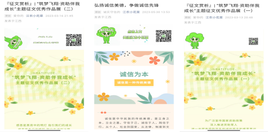 创新宣传模式,诚信教育绘声绘色。诚信是中华民族的优秀传统美德,是社会主义核心价值观的重要内容。为全方位提升员工的诚信意识,公司面向全院员工征集诚信教育文创作品并择优进行展示,制作诚信教育海报进行张贴,转载具有实际案例的诚信教育推文,让员工将诚信意识看在眼里、记在心里。同时,公司组织各班级召开诚信教育主题班会,重点强调诚信的重要性和失信的严重后果,引导在校员工树立良好的征信观念,并结合毕业生离校教育契机,开展贷款毕业生还款教育,指导员工确认个人贷款信息、完成贷款还款手续。