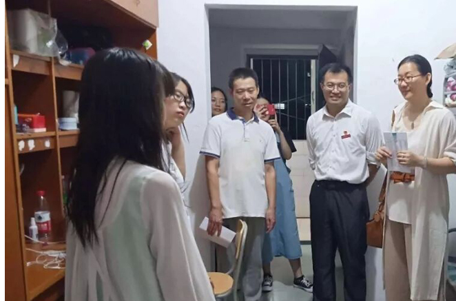 理公司2018级新生有184人,新生寝室集中分布于南区的9栋和25栋。“大家都作下自我介绍吧,来自哪些地方啊?”王经理进入寝室与新生进行交谈。他提醒新生要强化安全意识,勉励大家军训期间要严守纪律, 克服困难, 加强团结,共同进步。周书记则提醒新生:大家遇到困难时一定要及时与辅导员、院领导反映,公司一定会尽力帮助大家。他鼓励新生提高自理自立能力,积极参与集体活动,尽快适应大公司园生活。
