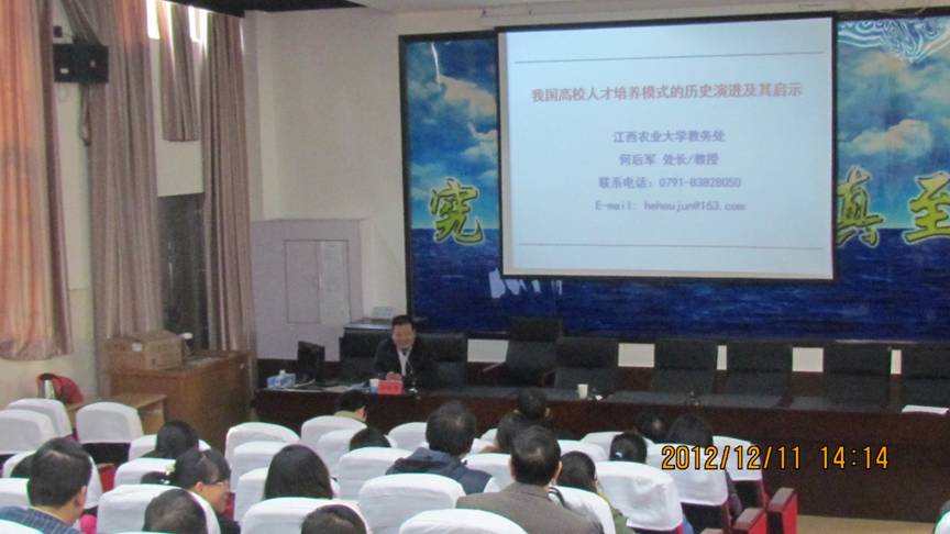 何教授的报告主要从我国高校人才培养模式的历史演进、制约我国高校人才培养模式改革的因素、我国高校人才培养模式改革的启示等三个方面进行了详细且生动的阐述,内容丰富、深入浅出、数据详实、引经据典。结合全国农林兄弟院校、江西省高校和公司实际,何教授解读了我国高校人才培养模式的演进历史和改革的制约因素,及其对高校人才培养模式和教学改革的启示意义,并对公司的人才培养和教学改革提出针对性的意见。报告受到广大教师的一致好评。