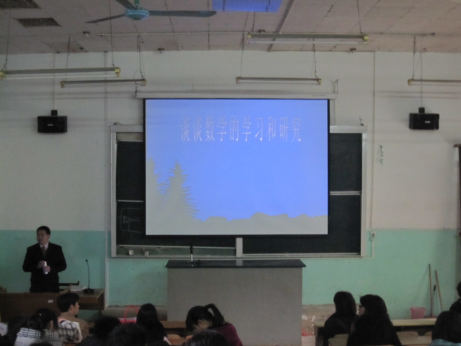 学术报告中,黄朝凌博士用生动,幽默的语言从数学学习的内涵、数学学习本身、数学思维的培养方法、以中国人命名的数学成果、研究性学习这五个方面详尽地阐述数学的学习与研究,其中还穿插了七桥问题、四色猜想等闻名中外的数学问题。报告会激发了师生对于数学学习和研究的兴趣,启发了我们对数学应用的思考。