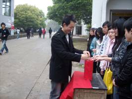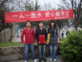 响应上级团组织的号召,3月31日中午,理公司团委在和谐食堂前组织了“一人一瓶水,爱心献灾区” 抗旱救灾捐款活动。院团委向全院团员青年发出倡议,广大团员青年纷纷慷慨解囊,将自己的爱心捐献给灾区。“一元、五元、十元……”一张张人民币凝聚着一份份爱心,一份份爱心又将凝聚成一股股清泉流入灾区。同时,各班级团支部也积极行动起来,组织本班团员青年集体献出爱心。活动中,同学们纷纷表示不仅要筹集善款捐献灾区,更要从现在开始懂得节约宝贵的水资源,以实际行动为灾区人民献出一份爱心。