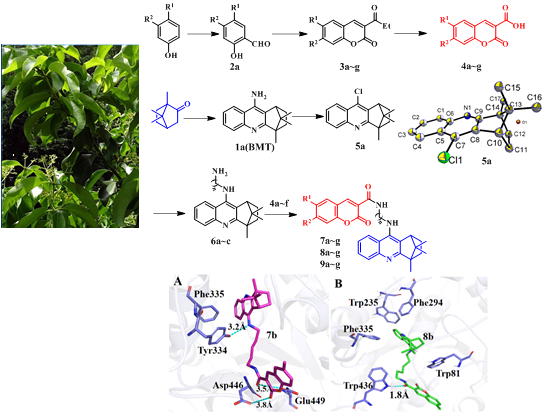 林公司博士研究生曾凡新在香豆素-BMT杂合体设计、合成及对抗乙酰胆碱酯酶生物活性测试等方面取得了重要进展,相关研究成果以“香豆素-BMT杂合体设计、合成和抗乙酰胆碱酯酶活性(Design, Synthesis and Bioactivity Evaluation of Coumarin–BMT Hybrids as New Acetylcholinesterase Inhibitors)”为题,于2022年3月在《Molecules》(IF=4.41)在线发表。pa娱乐游戏官网为该论文第一署名单位,尹忠平教授、彭大勇副教授为共同通讯作者。