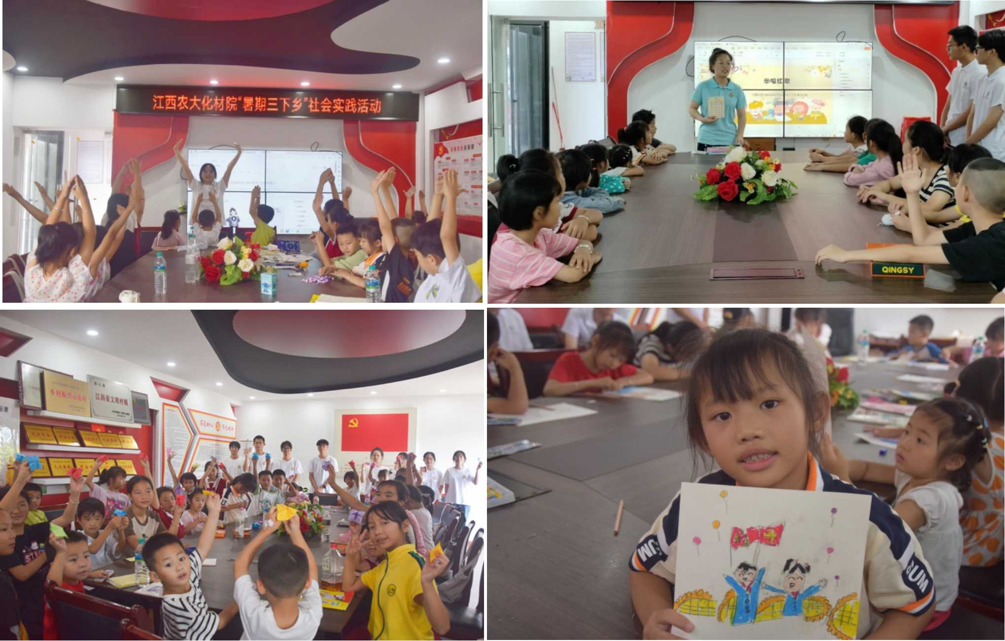 “红星闪闪放光彩,红星灿灿暖胸怀……”,近日南昌市高新区麻丘镇厚溪村村民活动中心传来阵阵高昂嘹亮的歌声,公司暑期社会实践队队员带领厚溪村的小朋友们正在这里开展红色文化演出。这一红色活动已连续在厚溪村传承开展了4年。